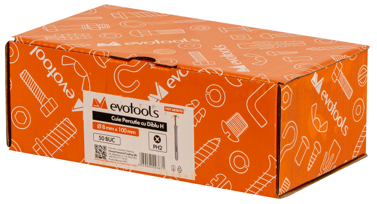 Schlagdübel-Nägel H, verzinkt und mit Stöpsel aus PE-Material. Sorgen für schnelle, sichere und dauerhafte Befestigungen; ideal für Montagen in verschiedenen Materialien, einschließlich Beton und Mauerwerk.