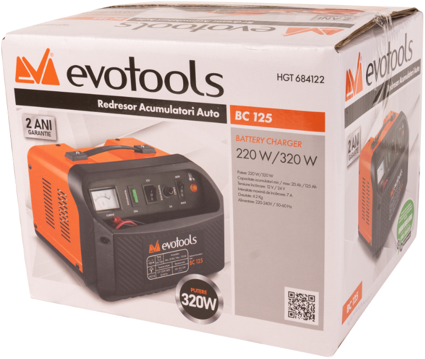 Halten Sie Ihre Autobatterie mit dem Ladegerät EvoTools® BC 125 in optimalem Betriebszustand – einem kompakten und zuverlässigen Gerät, das für die Nutzung in privaten Garagen oder kleinen Werkstätten entwickelt wurde. Dieses Modell ist speziell zum Laden von 12V- und 24V-Blei-Säure-Batterien konzipiert und bietet eine praktische Lösung für verschiedene Fahrzeuge, von Pkw bis hin zu leichten Arbeitsmaschinen.