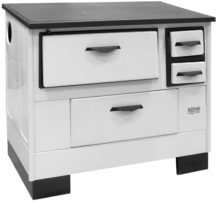 Traditionelle Art zu heizen und zu kochen mit festem Brennstoff. Geschützt durch eine spezielle, hochbeständige Lackierung, mit Schamottstein in der Brennkammer ausgekleidet und mit einer Kochplatte aus Gusseisen. Ausgelegt für die herkömmliche Nutzung von Holz als Brennstoff. Die Verwendung von Briketts mit hohem Heizwert wird nicht empfohlen.
