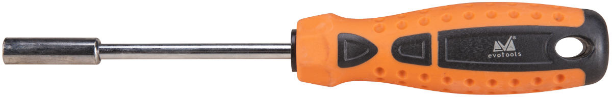 Der EvoTools® Bit-Halterschraubendreher hat ein Arbeitsteil aus hochwertigem, wärmebehandeltem Cr-V-Stahl mit magnetischem System zur Fixierung der Bits. Der Zwei-Komponenten-Griff aus Polypropylen und thermoplastischem Gummi (TPR) bietet optimalen Halt und höheren Komfort bei der Anwendung. Der Bithalter ist 1/4".