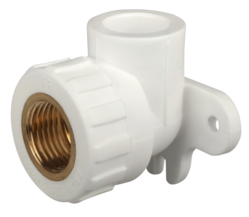 2. Installationen > 206. PP-R Installationselemente > 2014. Winkel PP-R Innengewinde Messing mit Flansch