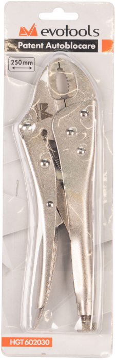 Die EvoTools®-Feststellzange besteht aus Kohlenstoffstahl und ist mit einer Nickelschicht überzogen, die sie vor Kratzern schützt und für ein ansprechendes Aussehen sorgt. Die Form der Backen und deren gegenläufige Verzahnung ermöglichen eine optimale Fixierung von Werkstücken mit flachen oder runden Oberflächen. Am Griff befindet sich eine Schraube, mit der sich die Maulöffnung einstellen lässt.