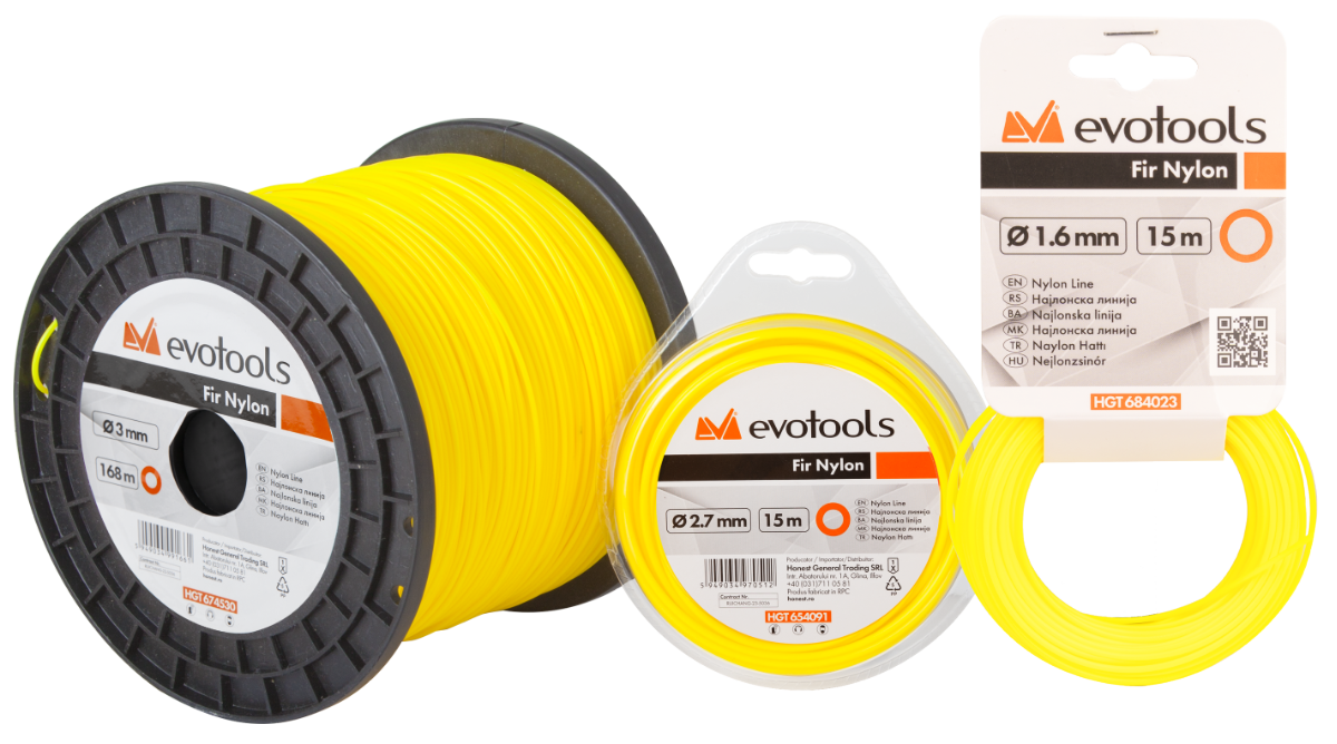 Die Nylon-Fadenschnur mit rundem Profil von EvoTools® ist die klassische und effiziente Wahl für die regelmäßige Rasenpflege und das Entfernen junger Unkräuter. Dank ihrer aerodynamischen Form reduziert diese Schnur Vibrationen und Geräusche während der Rotation, schützt den Motor der Motorsense und bietet dem Anwender höheren Komfort. Hergestellt aus hochdichtem Nylon ist der Faden so ausgelegt, dass er bruchfest ist und das Verkleben im Inneren des Fadenkopfes minimiert.