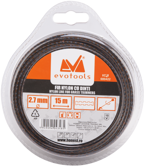 Die EvoTools®-Nylonschnur mit Zähnen besteht aus Nylon und wird zum Trimmen von Gras und Rasen verwendet. Sie ist hoch reißfest, widersteht Stößen gegen harte Gegenstände und weist eine hohe Verschleißfestigkeit während der Nutzung auf.