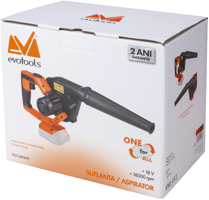 Dank des 18V-Motors können Sie den Garten schnell von Blättern und anderen Rückständen reinigen, mit einer Ausblasgeschwindigkeit von 64 m/s und einer Saugleistung von 4.5 KPa.
