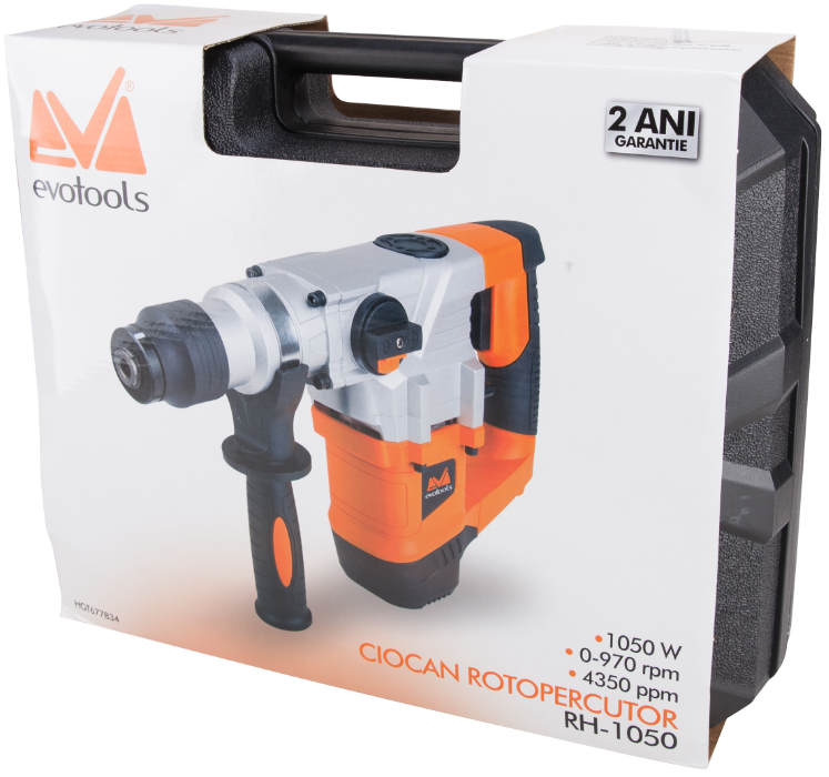 Der Bohrhammer RH1050 EPTO® ist das ideale Werkzeug für alle Bohr-, Schlagbohr- und Meißelarbeiten. Er ist mit einem starken 1050 W Motor ausgestattet, der 970 U/min ermöglicht und ein ermüdungsarmes Arbeiten sicherstellt. Das pneumatische Schlagwerk liefert 4350 Schläge/min und eine Schlagenergie von 4 J. Das SDS-Aufnahmesystem erleichtert den Betrieb zusätzlich, da Zubehör schnell gewechselt werden kann. Für eine sichere Handhabung ist ein vibrationsdämpfender Zusatzhandgriff vorhanden. Damit können Sie Bohrungen bis 28 mm in Beton, 13 mm in Stahl und 30 mm in Holz ausführen. Für normales Bohren schalten Sie das Schlagwerk ab. Wählen Sie die Drehstopp-Funktion für leichte Meißelarbeiten, z. B. das Entfernen von Boden- und Wandfliesen.