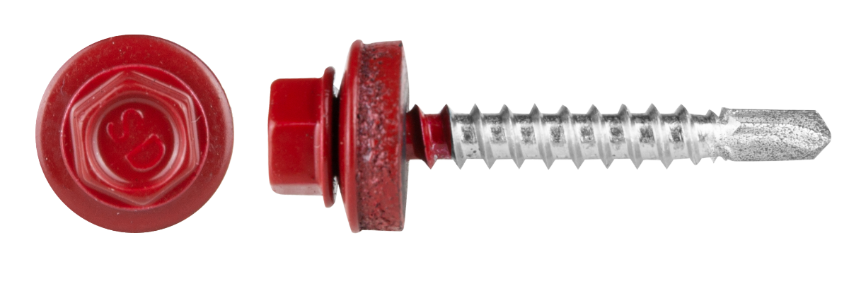 Dieser Schraubentyp wird zur Befestigung von Metallblechen auf einer Metallunterkonstruktion für Dächer verwendet. Er wird durch Kaltumformung aus Kohlenstoffstahl gefertigt und ist mit einer Stahlscheibe und EPDM-Gummi ausgestattet, um Wassereindringung zu verhindern.