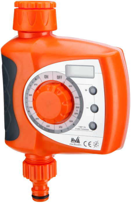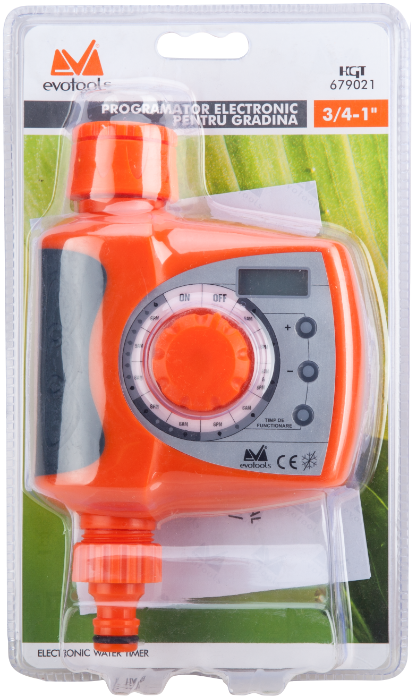 Elektronisches Gerät für die Gartenbewässerung, das die Einstellung von 10 spezifischen Bewässerungsprogrammen pro Stunde, Tag, Woche ermöglicht und so Zeit und Wasser spart.